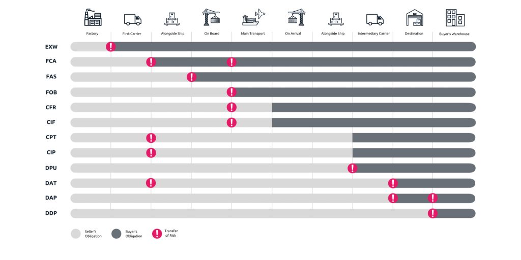 Toplamda 11 incoterms vardır. Her terim, alıcılar ve satıcılar için işlemdeki görevleri, maliyetleri ve riskleri açıklayan belirli bir rehberlik sunar. Incoterms, satıştaki tüm taraflarca kabul edilen şartların açık ve anlaşılır olmasını sağlamak için olmazsa olmazdır